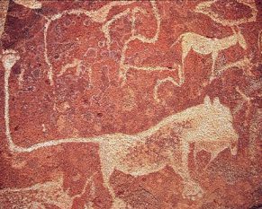 O quei siti pieni di fascino ancestrale come Twyfelfontein, o la “Phillip’s Cave” sulle Erongo Mountains, o quella località chiamata il “Paradiso dei Boscimani” sullo Spitzkoppe, montagna che risale alla rottura del Gondwana, dove l’uomo ha lasciato il segno del suo passaggio con incisioni e pitture rupestri.