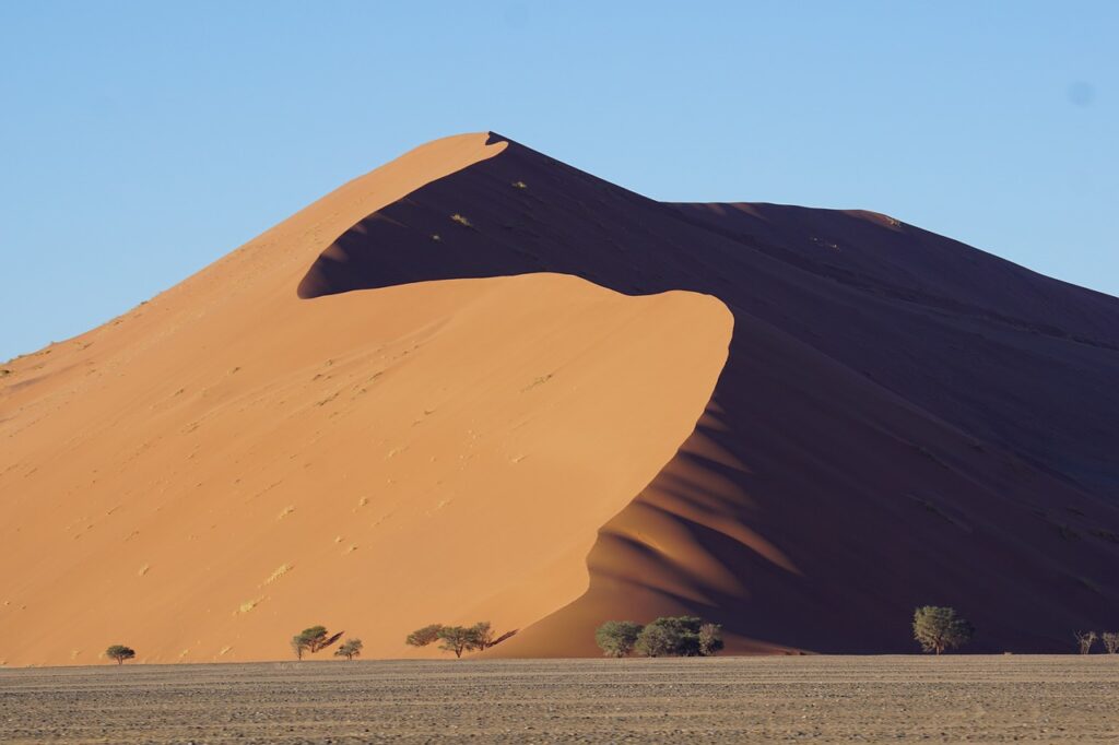 Lì le dune si susseguono l’un l’altra sull’orizzonte a perdita d’occhio creando un mare di onde colorate, che cominci a scalare spinto dalla costante bramosia di vedere, di conoscere e di arrivare oltre quella duna, per trovarne un’altra ancora più alta da scalare, su quelle creste tormentate dal vento che le plasma in un continuo rinnovarsi di forme e di colori, che il sole dona con un avvicendarsi di ombre e di tinte che nessun’altro deserto ha mai avuto il privilegio di sfoggiare, passando dall’ocra, all’arancio, all’albicocca, all’amaranto, in una tavolozza di colori ineguagliabili, perché solo il Namib è il deserto più antico del mondo, con le dune più alte del mondo ed i colori più spettacolari del mondo!