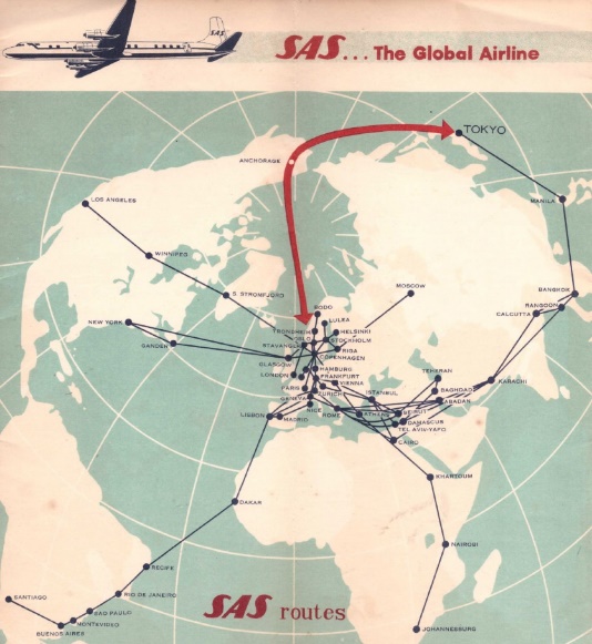 La rotta aperta dalla SAS fu poi imitata da altre compagnie fra cui la Japan Airlines che in apertura degli anni sessanta lanciò la Tokyo-Seattle sempre via Anchorage. Lo scalo polare era diventato un importante punto di transito ultra frequentato, capace di ridurre le ore di volo fra l’Europa e il Giappone.