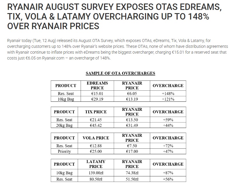 - https://corporate.ryanair.com/news/ryanair-august-survey-exposes-otas-edreams-tix-vola-latamy-overcharging-up-to-148-over-ryanair-prices/