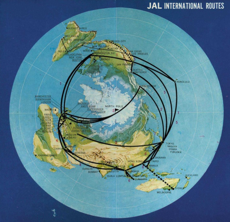 Una prima possibilità di accorciare i tempi fra Europa e Giappone venne attuata nel 1957 dalla compagnia scandinava SAS. Inizialmente il nuovo collegamento era limitato ai servizi fra Danimarca e Los Angeles (3), via Rotta Polare la quale riduceva la durata del viaggio da 36 a sole 22 ore.
