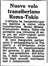 Il quotidiano “L’Unità” così diede la notizia dell’apertura della Transiberiana Alitalia nell’edizione del 3/11/1973