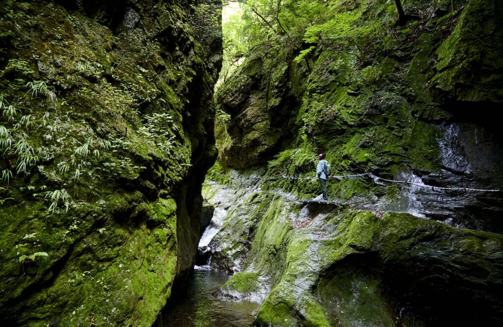 Se Okutama è movimento ed energia, Hinohara è introspezione e magia. L’unico villaggio rimasto nell’area metropolitana di Tokyo custodisce tradizioni rurali e paesaggi intatti. Tra i suoi tesori naturali c’è Kanotoiwa, una gola spettacolare dichiarata Monumento Naturale. Due imponenti pareti rocciose si fronteggiano come giganti silenziosi, creando un passaggio che sembra l’ingresso a un mondo segreto. Ponticelli di legno, scale e catene accompagnano il cammino tra giochi di luce e acque cristalline, mentre il fragore del torrente rimbomba tra le pareti: un’esperienza che riconnette con l’essenza più pura della natura.