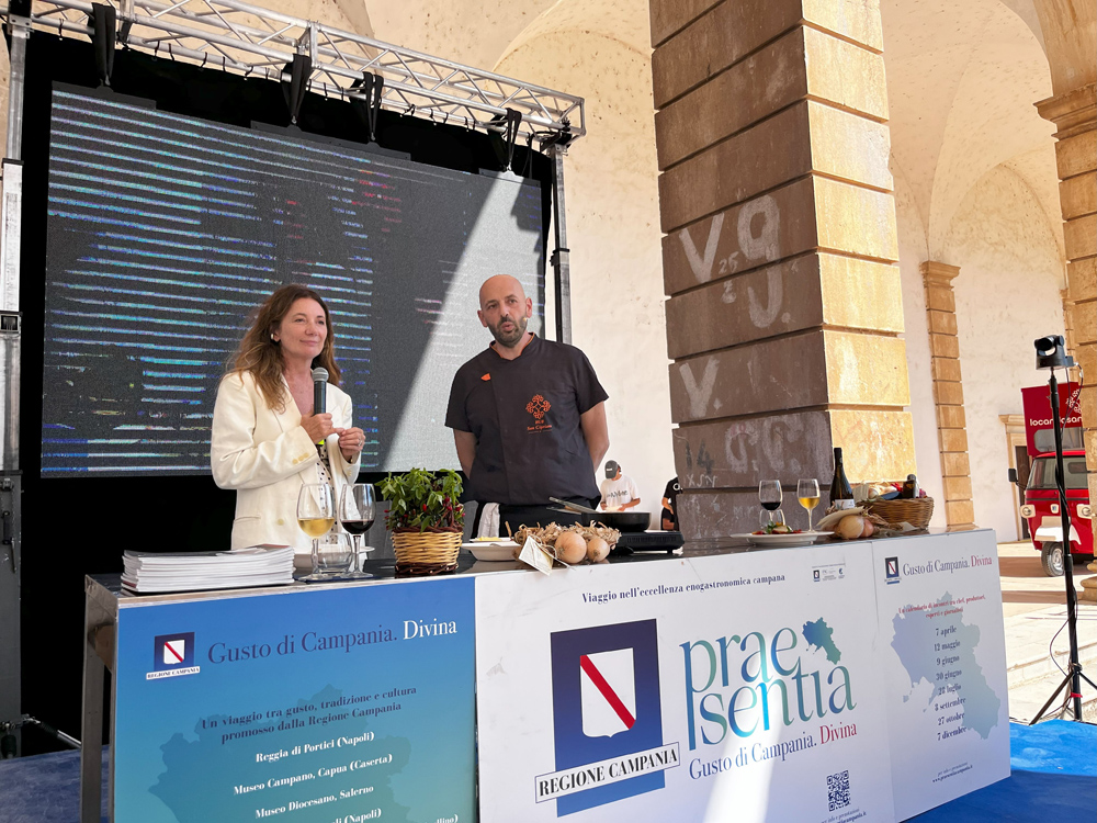 Proprio all’insegna dei prodotti della tradizione e della regione, il convegno di Praesentia ha valorizzato, nello showcooking guidato da Maddalena Fossati, direttrice de La Cucina Italiana, le creazioni di due chef ambassador, Christian Torciello, una stella Michelin chef del ristorante Osteria Arbustico di Paestum e Antonio Giordano, Chef della Locanda San Cipriano di Atena Lucana.