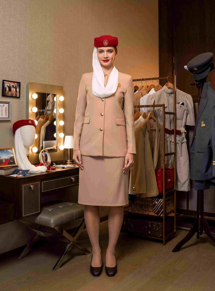 Emirates rifiuta la moda veloce e le tendenze passeggere a favore di uno stile e una raffinatezza senza tempo. Dalla sua nascita nel 1985 fino all’attuale versione del 2025, l’uniforme del personale di cabina iconica e classica, resiste alla prova del tempo e si avvale di tessuti con rivestimento nanotecnologico che permettono di mantenerla immacolata anche dopo i voli a lungo raggio.