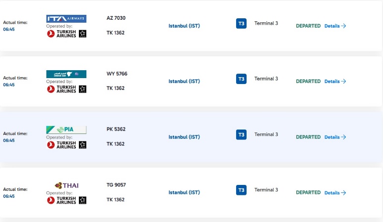 Uno stesso volo, un singolo unico volo viene rappresentato più volte con differenti numeri identificativi quasi a voler significare una moltiplicazione dei pani e dei pesci in termini non evangelici bensì aeronautici; non solo ma, come mostra la nostra immagine, nell’ambito dello stesso volo compare il logo di due vettori suddivisi dalla scritta “operated by”.