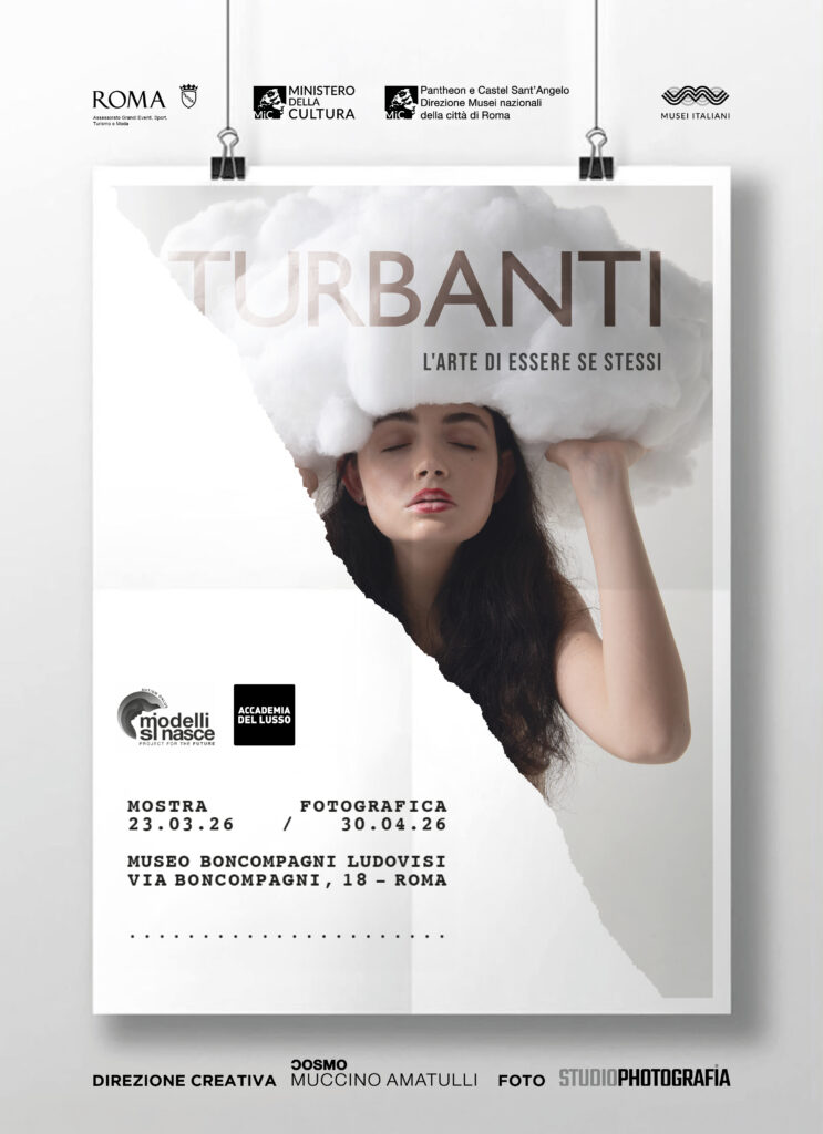 Dal 23 marzo al 30 aprile 2026 la Casa Museo Boncompagni Ludovisi di Roma ospita la mostra fotografica “Turbanti”, un progetto che mette in dialogo moda, fotografia e inclusione sociale. L’esposizione, curata dall’artista e stylist Cosmo Muccino Amatulli e con fotografie di Roberto Autuori, nasce dalla collaborazione tra Accademia del Lusso e l’associazione Modelli si Nasce, con il patrocinio dell’Assessorato ai Grandi Eventi di Roma Capitale. L’inaugurazione è prevista per il 23 marzo alle 17.30, alla presenza di istituzioni, promotori e protagonisti del progetto, tra cui l’onorevole Federico Mollicone, presidente della Commissione Cultura della Camera dei Deputati.