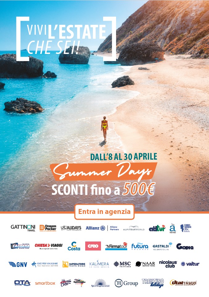 Spiega Sabrina Nadaletti, Head of Leisure Gattinoni Travel: “Con la campagna Summer Days di quest’anno abbiamo voluto dare alle agenzie del nostro network un reale vantaggio sulla stagione estiva, in un momento in cui la domanda va stimolata e accompagnata con ancora più attenzione. Anticipare la campagna ad aprile significa avere più tempo per lavorare le vendite, intercettare i diversi target e aiutare i clienti a trasformare, con maggiore sicurezza, il desiderio di partire in una decisione concreta. Con il concept Vivi l’estate che sei abbiamo costruito un’offerta trasversale, capace di parlare a pubblici diversi, dalle famiglie ai giovani, dagli amanti dei tour organizzati a chi cerca esperienze su misura, valorizzando il ruolo centrale della consulenza delle nostre agenzie. Il cliente può contare su professionisti di fiducia che lo accompagnano nella scelta, senza rinunciare a condizioni competitive, grazie a sconti fino a 500 euro definiti insieme ai Partner. È proprio l’unione tra competenza, fiducia, serenità e convenienza a rappresentare il valore aggiunto che vogliamo trasmettere al cliente finale in questa campagna”.