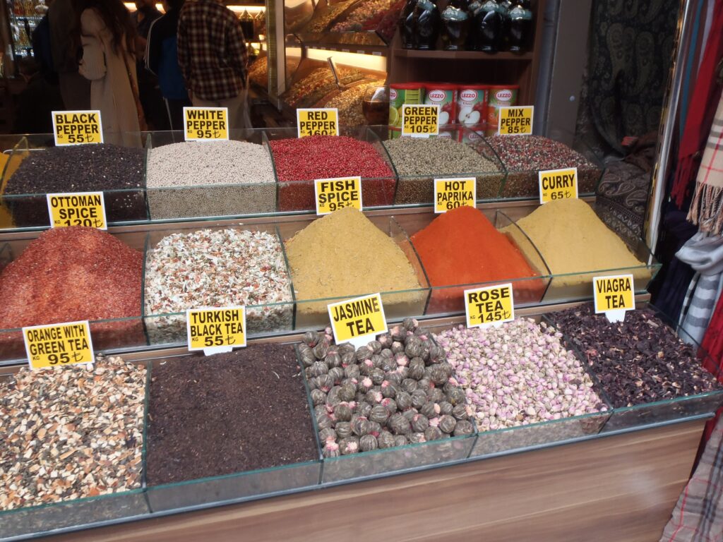 Poco distante, il Bazar delle Spezie, o Bazar Egiziano, offre un’esperienza sensoriale diversa: piramidi di zafferano, sommacco, petali di rosa e infiniti tipi di lokum (delizie turche). Qui il commercio è un’arte fatta di contrattazioni, assaggi offerti col sorriso e un’ospitalità che non conosce fretta.