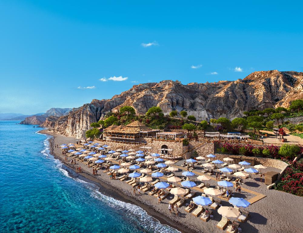 Benvenuti al Royal Beach Club, lusso tra sabbia vulcanica ed Egeo